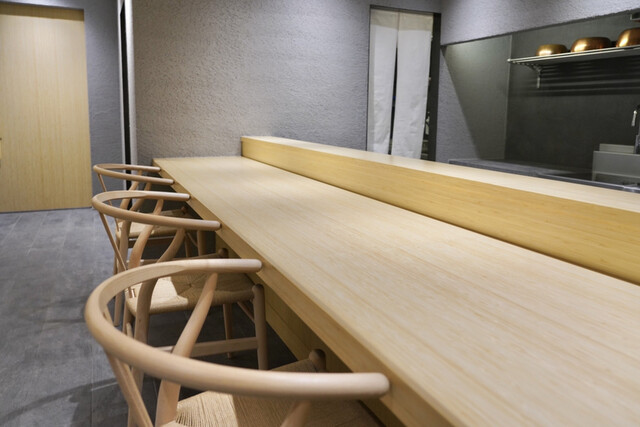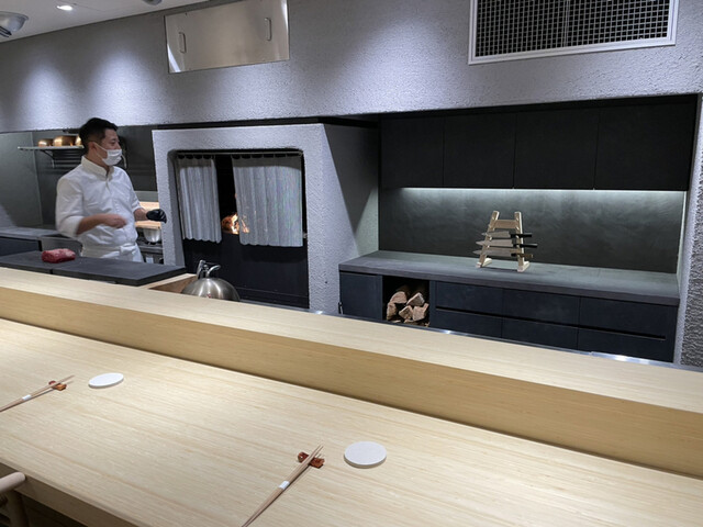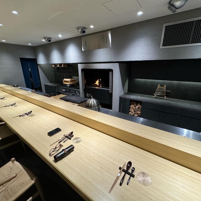 「炎」「熾火」「香り」など新火の魅力を最大限に引き出しながら食材の尊重をテーマにした料理の数々を、臨場感あふれるカウンター席にて堪能できます。
