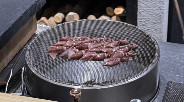 内容的には和食で、魚貝類中心のメニュー。全ての素材が最高の状態になるように薪で丁寧に調理されるのを見ているだけでも食欲が湧いてきます。