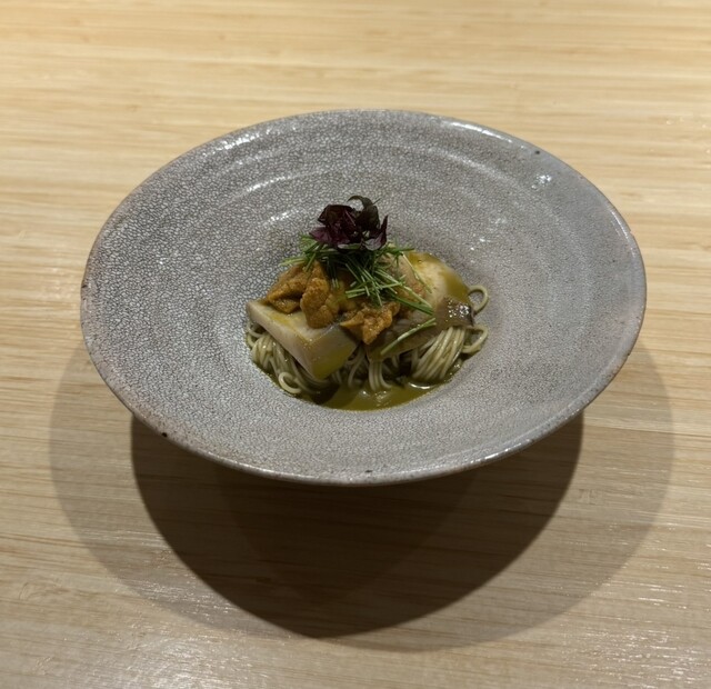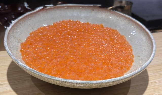 全て文句なしの内容でしたが、特に新鮮な筋子からその場で作るイクラが絶品でご飯を食べすぎました。北海道から空輸で運ばれ、新鮮な状態が維持できているから、この美味しさが実現できるそうです。釣りが趣味というご主人はまだお若いですが、人生二回りくらいされているのではと思うくらい、海鮮に詳しく、海鮮のことを熟知されており、前世は魚ではないかと思っております。ここは軽井沢という海から近くはない場所だというのを忘れてしまいます。