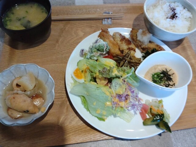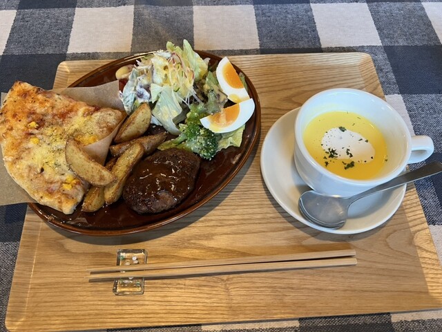 暑い日だったので冷房が無いのに驚きましたが、落ち着いたら汗も引きかぼちゃと人参の冷製スープに引かれてパンのセットにしました。サラダもピザパンもとても美味しかったです。