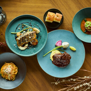 【前菜】 鮮魚とクスクスのタルタル仕立て アメリケーヌソース 【パスタ】 ズワイ蟹を使った自家製スパゲッティのトマトクリーム 【メイン】下記よりお選びいただけます ・鮮魚の薪火グリル 根菜のアグロドルチェとカリフラワーのクレマ ・信州豚と季節野菜の薪火グリル りんごのピューレ ・国産牛頬肉のペポーゾ ポレンタ りんごのピューレ +JPY1,500 【デザート】 金柑のブリュレと蜂蜜のパンペルデュ |