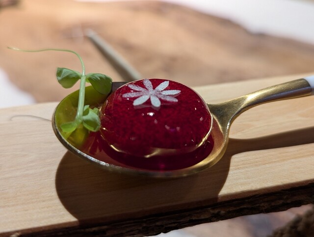 遊び心とライブ感、そして確かな技術で構成された一皿一皿は、驚きと満足感に満ちていた。空間、ペアリング、料理の三位一体で特別な時間を演出する中軽井沢の名店。特別な日に再訪したい一軒。