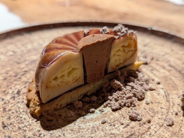 デザートは紅茶のババロア メイプルシロップと珈琲、最後に和栗のクリームチーズとビオチョコレート。甘さ控えめで洗練された余韻を残し、コースを締めくくった。