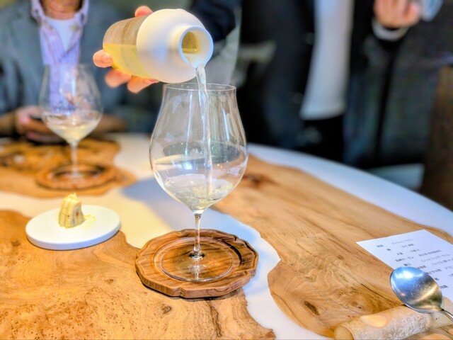 長野坂城町の北村ビニャーリというシャインマスカットを絞ってベースにして福岡の八女茶を加え、軽井沢のクロモジの木の香りを移して。