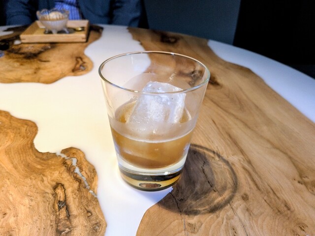 コーヒー豆を加え香りを付けて、炭酸で割ってロックで。
