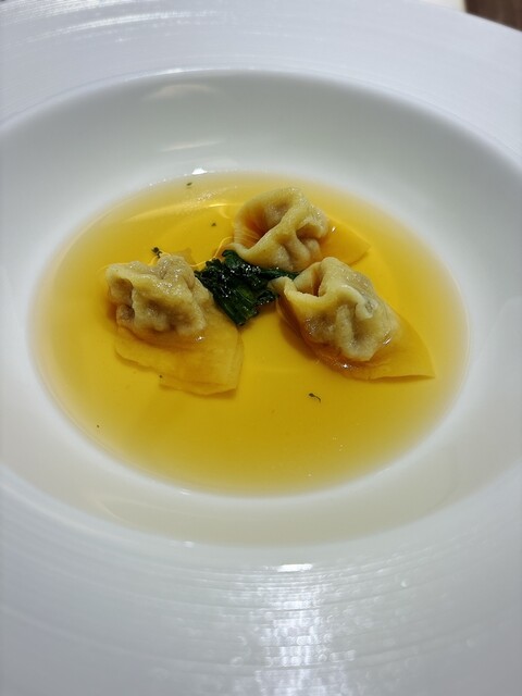 パスタもそれぞれみんな違った味わい。焼きリゾットも香ばしく、(全く粉っぽさがない)そら豆ソースと良くマッチしています。豚肩ロースのソテーは豚肉の旨みが引き出されていて、非常に美味しゅうございました。