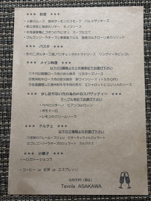 Tavola ASAKAWA(ターヴォラ アサカワ)