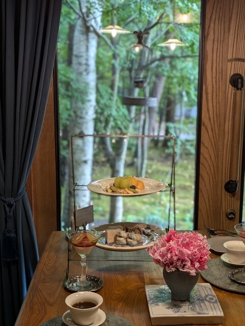 軽井沢の森の中で小鳥やリスたちを眺めながら美味しい中華アフタヌーンティーがいただけるお店。