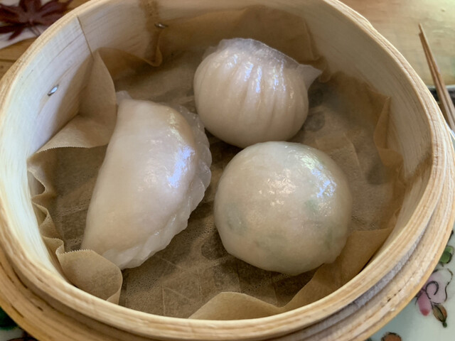 続いて村木さんのスペシャリテ点心が続く「海老蒸し餃子、シャンツァイ入り、飛子入り」の3種の蒸し餃子。