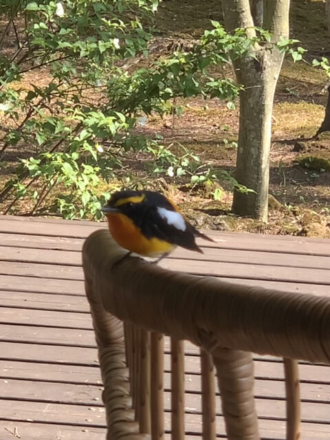 僕ら以外では時々、色んな小鳥がやってくる。色のキレイな小鳥は、キビタキと言う『森のナルシスト』と呼ばれる小鳥。夏の始まりに森を訪れるとか。こんな気持ち良い空間の中で数時間食事を楽しむのは贅沢な話。