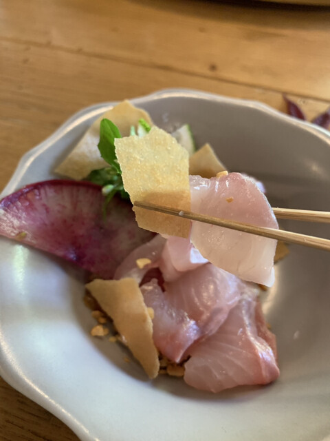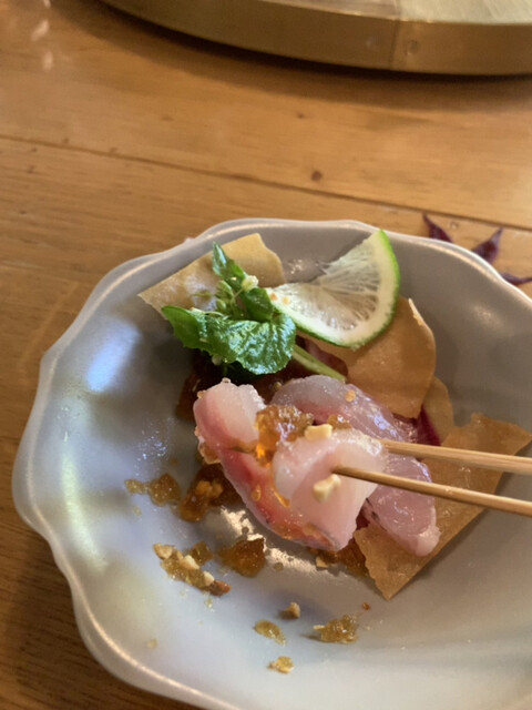 菊芋のスプーンに小鳥のキジハタを乗せてみた