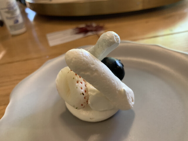 下段には「①メレンゲ焼き菓子…時間が経つと湿気が付くのでこれから食べるように言われ、サクッと食べる。まさにサクッとした食感が美味。