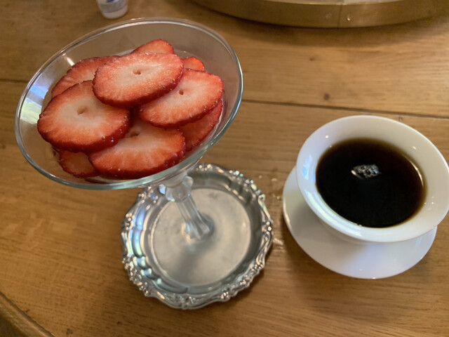 その他、葡萄、イチゴ、今季初のさくらんぼも付いてくる。終盤戦は飲むお茶も東方美人に変わる。