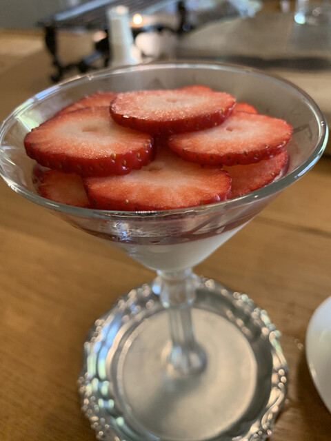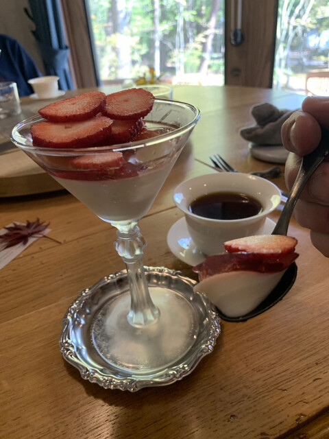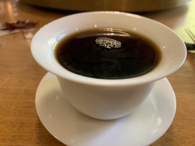 まずは「苺の乗る杏仁豆腐」…杏仁豆腐に合うペアリングコーヒーが用意される。これ、代官山のカフェファソンの岡内さん考案のブレンド。実は岡内さんとは先週セゾンジブレーで偶然知り合ったコーヒーロースターの方だった。奇妙に繋がるのが面白い。そして、ホントに杏仁豆腐とドンピシャに合うコーヒー。