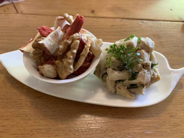 「クリームチーズと腐乳、リンゴチップと胡桃」と「筍と木の芽の和え物」