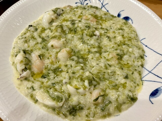 それ以外にエビとヤリイカ海苔のリゾット、マルゲリータ、信州木の子のパスタを注文。