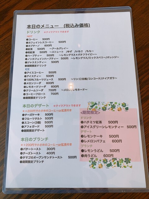 期間限定メニューがあり、このときはレモンを使ったケーキやおうどんがありました。