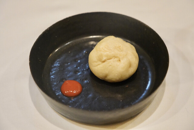 鳥節のエキスに昆布の旨味を加えた焦がしバターソースとの組み合わせでいただきます。
