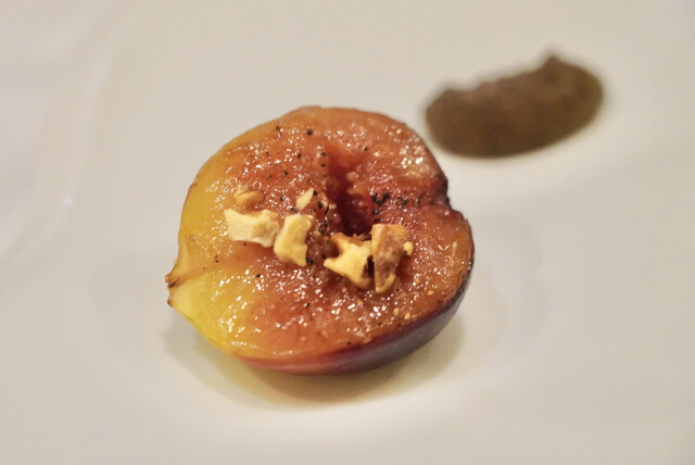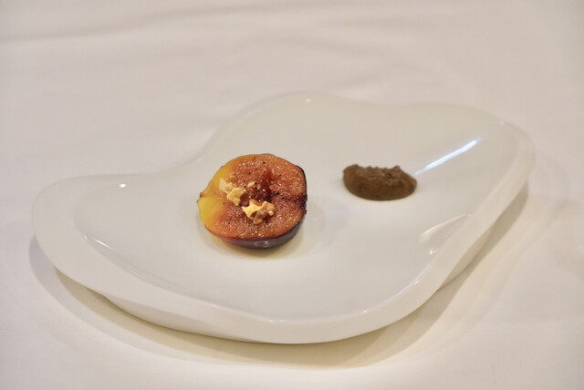 上にはローストしたクルミを添え黒ニンニクのソースと合わせていただきます。