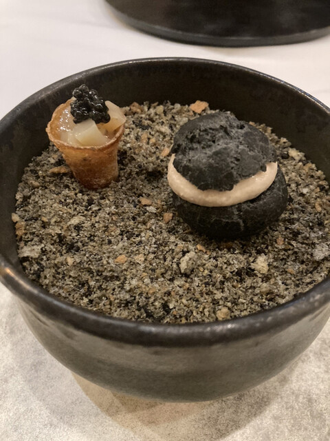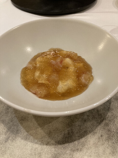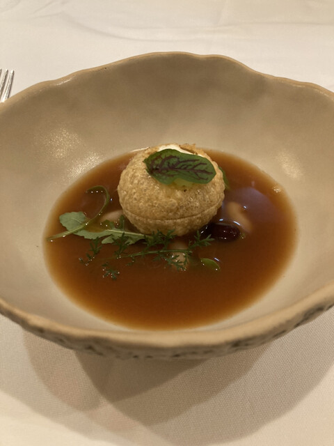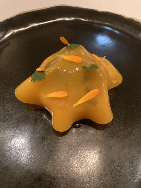 ●蕪のグラマンジェ、甘海老のコンソメのジュレ