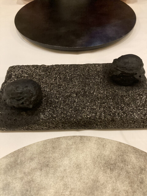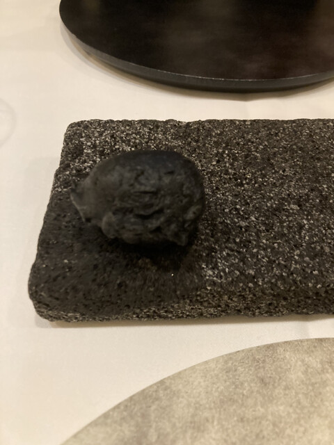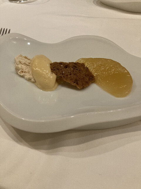 ●洋梨、みりんのアイスクリーム、胡麻油のペースト、マカダミアンナッツのキャラメルチップス