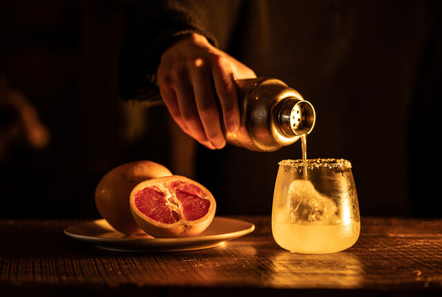 "夏季限定の完全屋外の和モダンバー。地酒を中心としたカクテルなどをご用意しています。隣りにレストランがあるので、お食事をしながらお酒も楽しめます。 *冬季は屋内で営業しております。