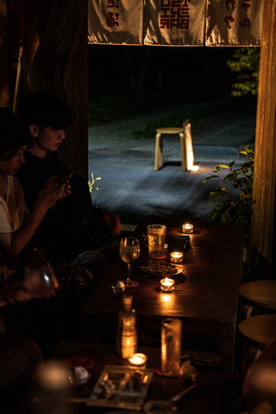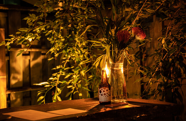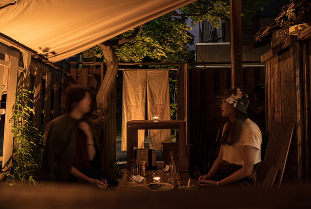 "夏季限定の完全屋外の和モダンバー。地酒を中心としたカクテルなどをご用意しています。隣りにレストランがあるので、お食事をしながらお酒も楽しめます。 *冬季は屋内で営業しております。