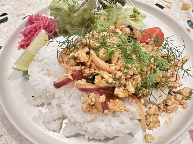 注文はキーマカレーとラープ・ガイの2品。