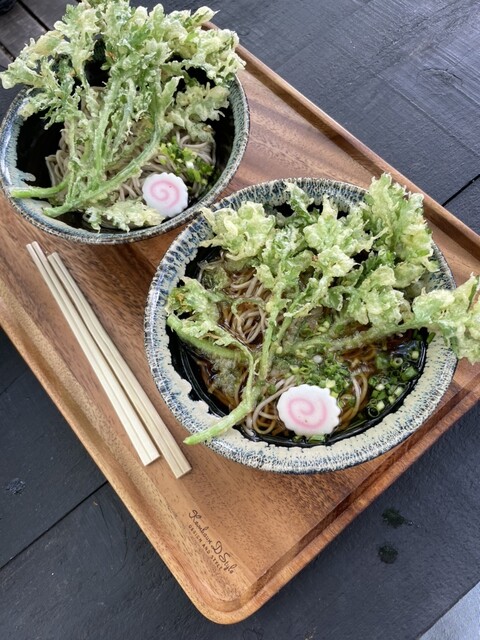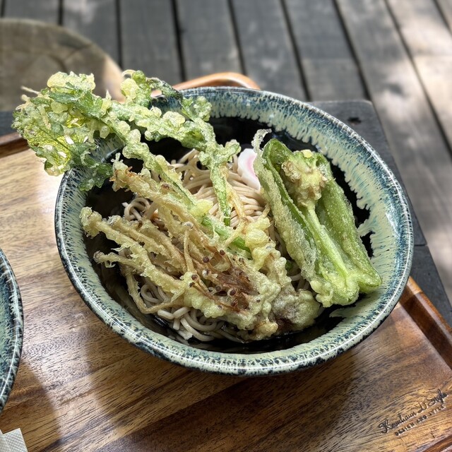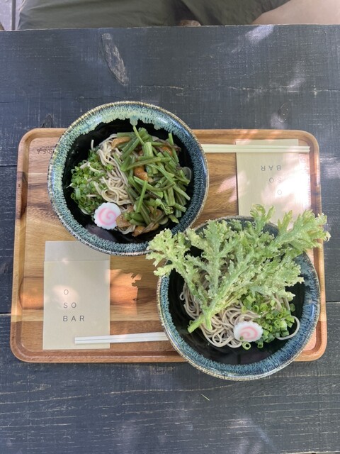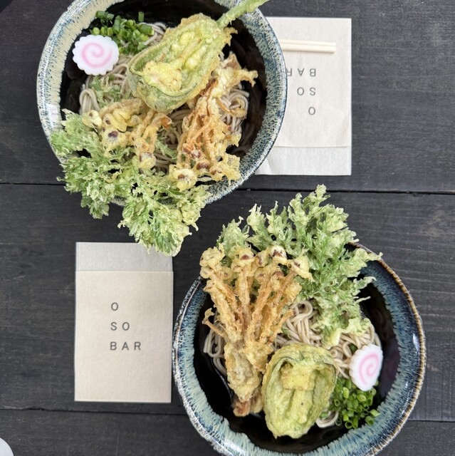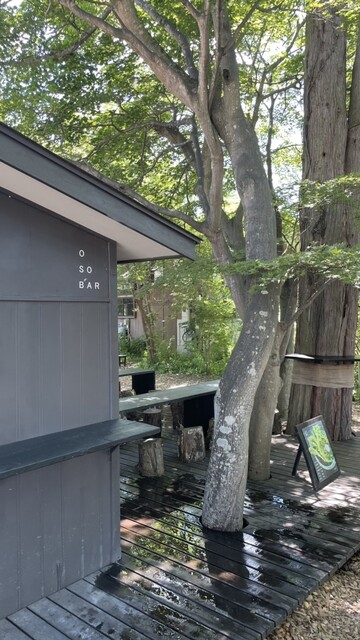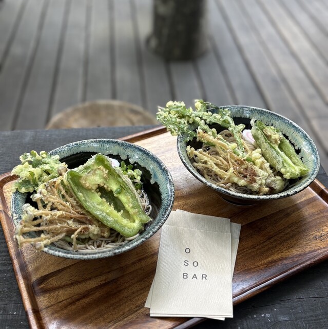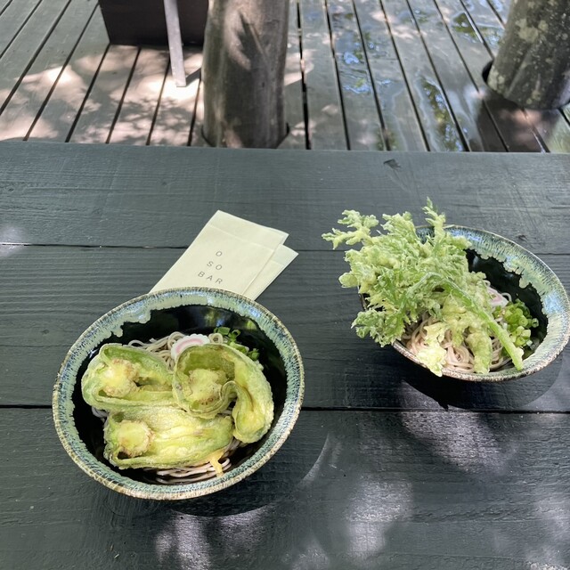 気になっていたOSOBARへ。木々が茂る自然の中でいただいたおそばは格別においしい。初めてピーマンの天ぷらのお蕎麦を食べたけどこれがすっごくおいしかった!季節によって天ぷらも変わるから変化が楽しめそう。