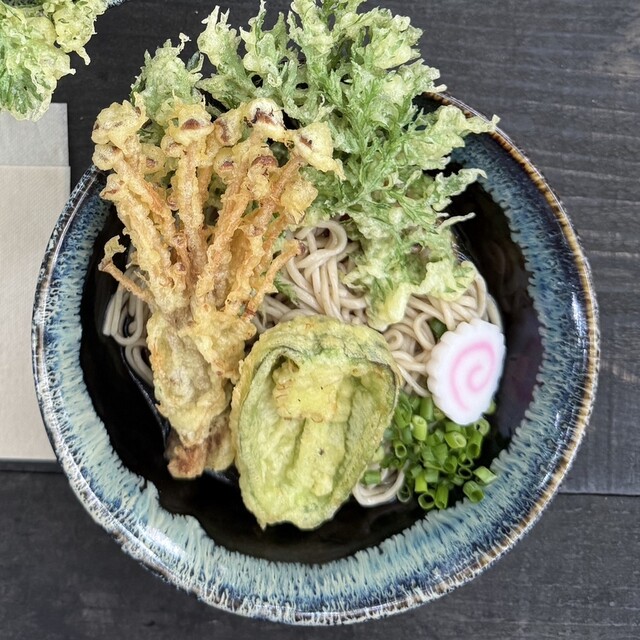駅から30分くらいは歩くので遠めだけれど暖かくて天ぷらたっぷりのお蕎麦を食べることができました。時間をずらして昼過ぎくらいに行ったので並ぶことなく入れました。席も椅子の席に座りました。季節の天ぷら蕎麦...
