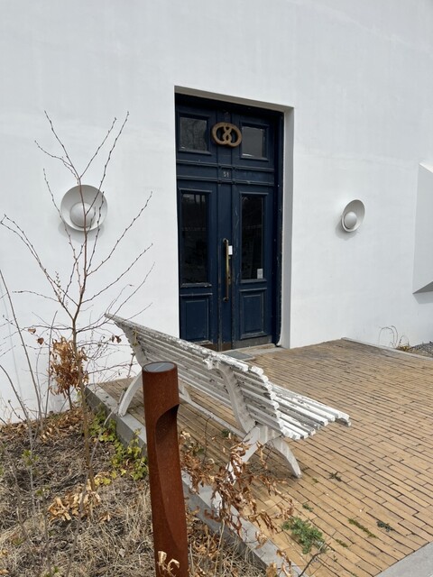 不思議な白い建物奥の方のパン屋さん。