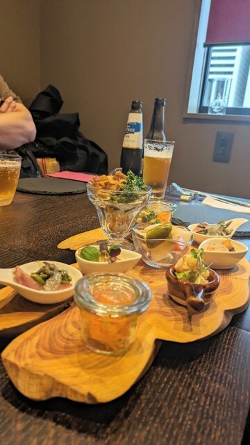 とても雰囲氣が良く、おいしかったです。前菜がものすごく美味しかったし、盛り付けも最高でした!チーズもおつまみでついてきて、ずっと食べてました。。