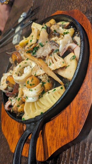 イカは柔らかく、複数のキノコと筍は素材の味がとても濃いです、香りのよいペルシャ―ドを纏い美味しいです