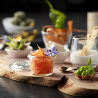 アラカルトは、アミューズ盛合わせと乾杯ドリンク(おひとり様/2850円)からスタート。 そのあとは、日替わりメニューからご注文いただける一品料理とお気に入りのワインでお楽しみください。