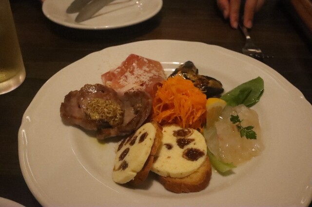 カウンターに通されたが、ディナーのfoodメニューはパスタが10種類くらいのみ。アラカルトメニューは...