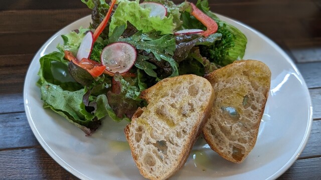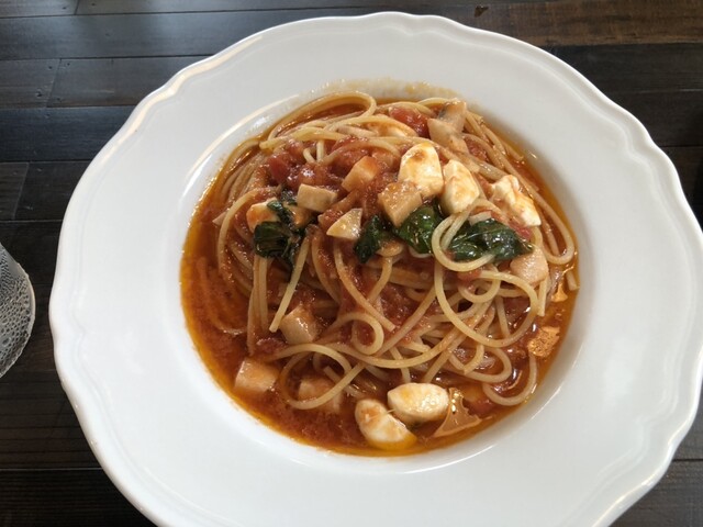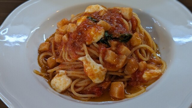 サラダとパスタのセット。バゲットが2切れついています。パスタは長芋とモッツァレラのトマトソース。オイリーなトマトソースだが胃にもたれない。美味しかったけど…これで1650円かぁ。消費税込みで1400円...