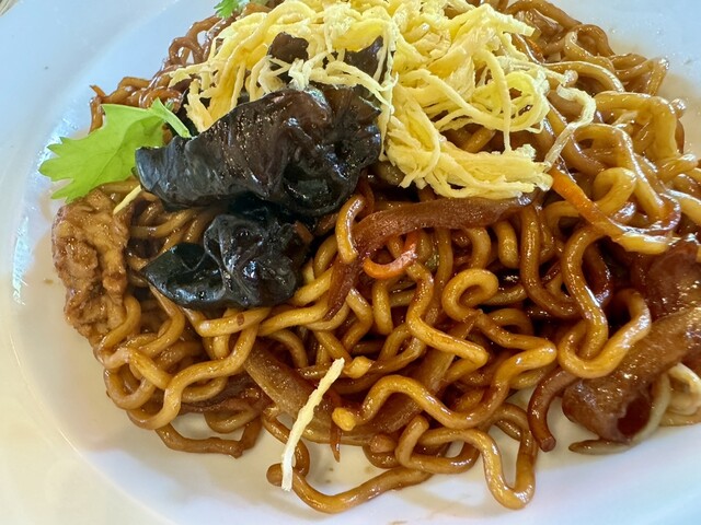 メインは、エビワンタン蕎麦に、上海焼きそば