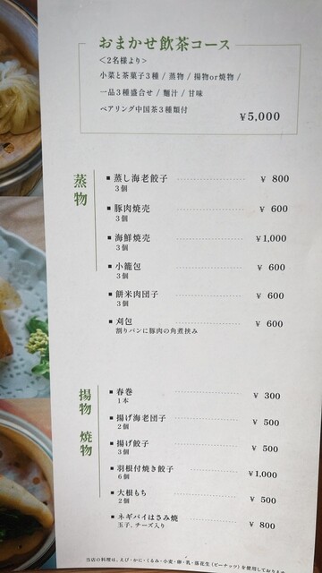 台風が近づいてくる中、朝から雨が降ってます。前回ディナーだったので今日はランチにやって来ました。せっかくなのでおまかせ飲茶コース¥5,000を注文。〆の麺かスープ、デザートは選択制で好きなものを選べる...