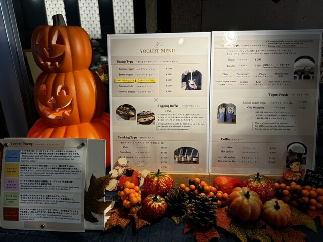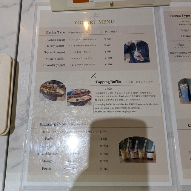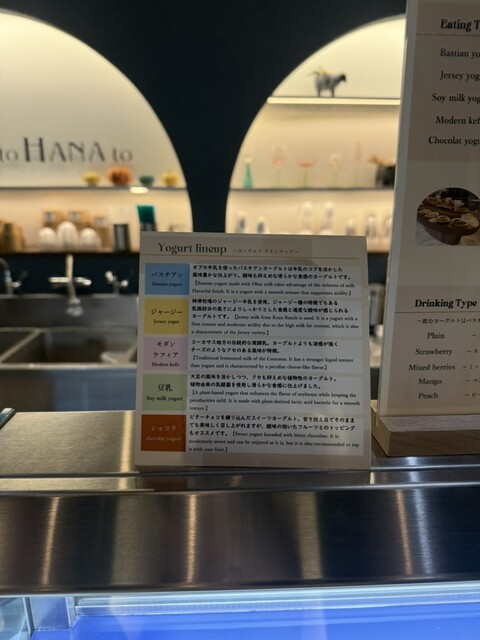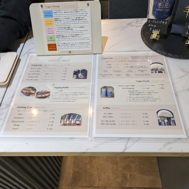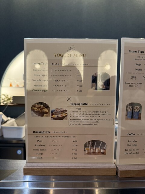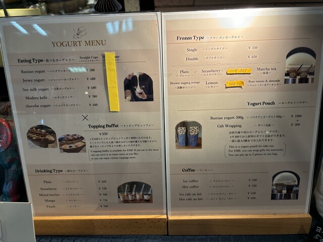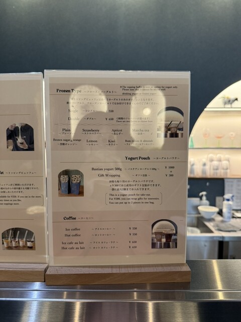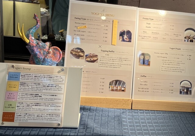 ヨーグルトとシャーベット?(アイス、ジェラート、ソルベ)を提供されている様子。