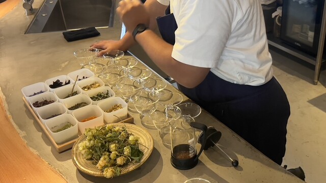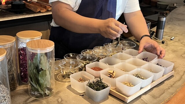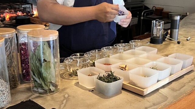 最後は自分オリジナルブレンドのハーブティーで締めくくり。心地よくリラックスできた。