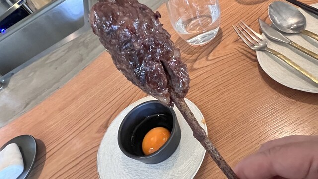 そして猪のつくねは卵黄につけて食べると野生味が感じられ、絶品。