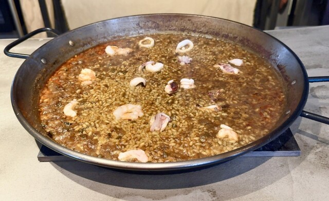 Arroz con bacalao y puerros:鱈と鱈白子と葱のアロス