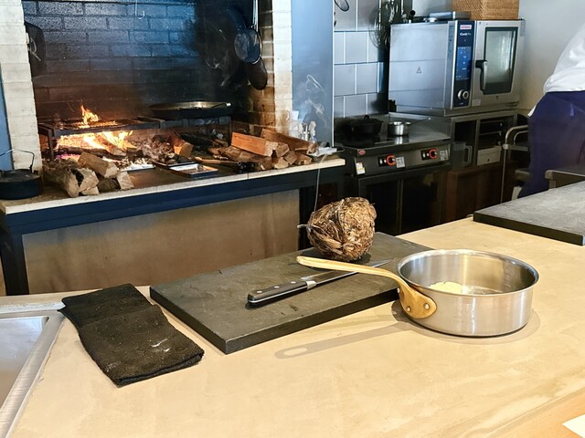 根セロリの丸ごとロースト 根セロリと共に煮込んだ自家製バター 根セロリと麹のソース 薪の香りの塩 バターミルクの泡