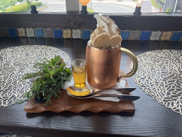 今回いただいたのは、間伐材から撮ったシロップを使ったチャイとナッツのふんだんに入ったソフトクリームをいただきました