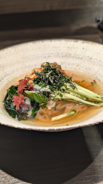 この日はカウンター席にて予約し店主おまかせのカウンター限定コースにて訪問。イノベーティブやイタリアン、フレンチなどの経験豊富なゆえ、逸品料理がどれも味付けが素晴らしく、ナムルやキムチなども手作りで美味しい。