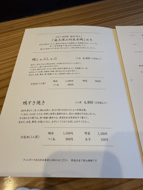鴨のしゃぶしゃぶ、鴨すき等もあり、
