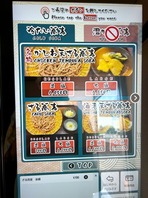 「ざる蕎麦(並盛) 700円税込」