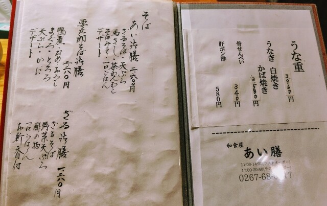 そばとうどん、郷土料理の店、和食屋 あい膳。郷土料理は、ほうとうやすいとん。ほうとうはかぼちゃ、きのこ、鴨のほうとうなど。
