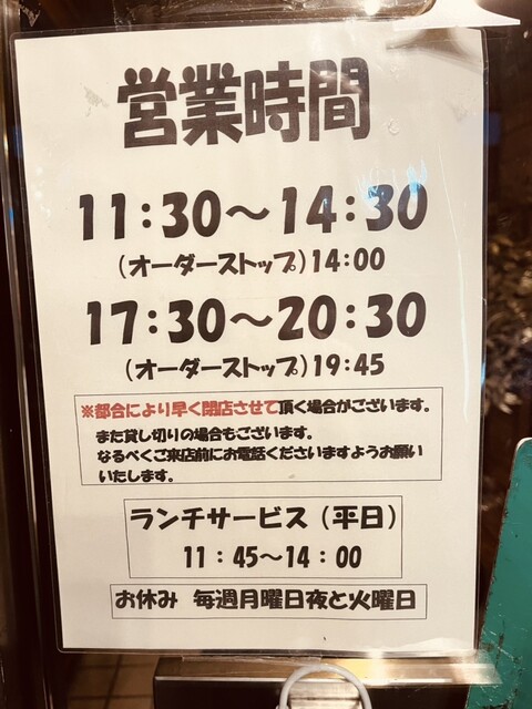 | サービス | 2時間半以上の宴会可、テイクアウト |