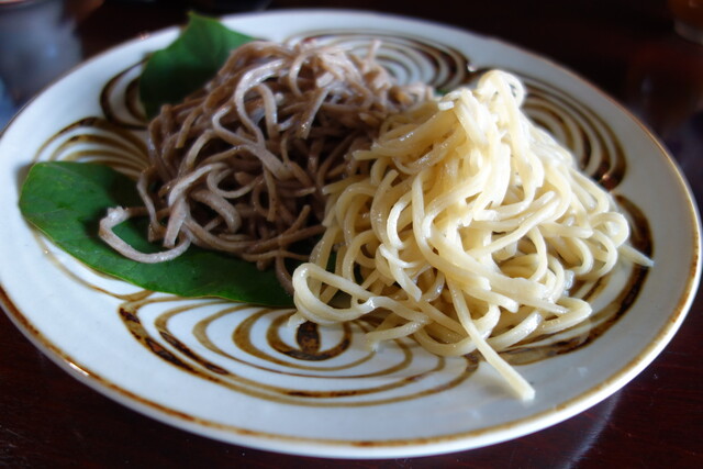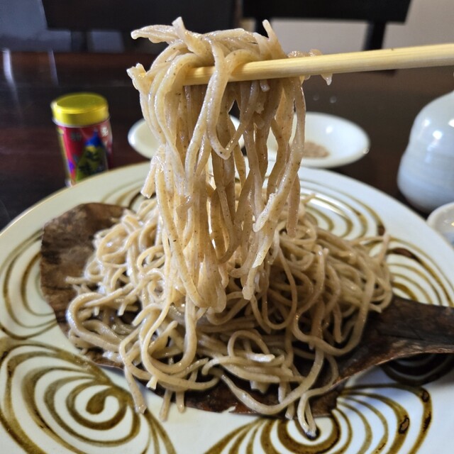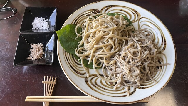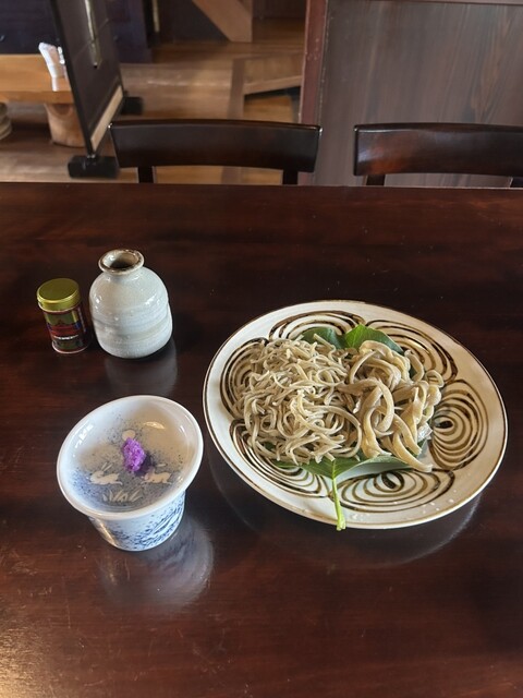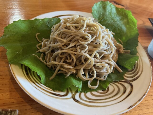 長野佐久の山里にあるそばの有名店。そば粉は村内産の玄どば100%使用の石臼挽。自然な粗いそばもこれはこれで美味しい。